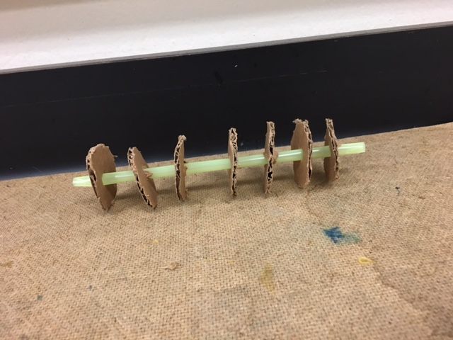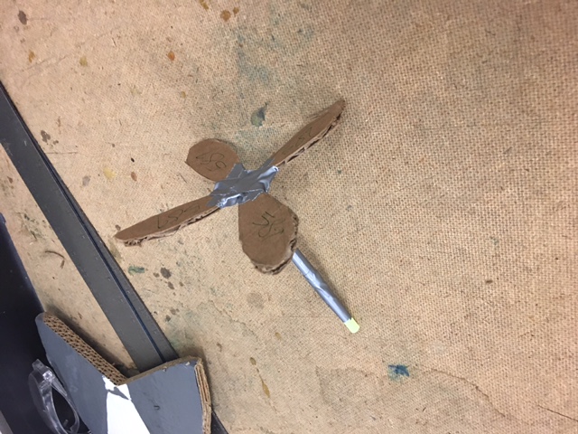 Our idea was to put 4 wings on one straw and just put a lot of tape on it to make it stay. It took a while to cut